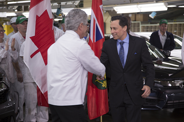 作为安大略省省长韦恩的日韩经贸访问团的行程之一,安大略省省长韦恩(Kathleen Wynne)和经济发展及增长厅厅长杜杰(Brad Duguid)于近日在东京本田总部会见了包括本田加拿大公司主席兼总裁程金(Jerry Chenkin)在内的公司高管。此次会见加强了安大略省在全球范围的商业联系,并重点展示了安大略省在汽车创新和先进制造业方面的卓越成果。