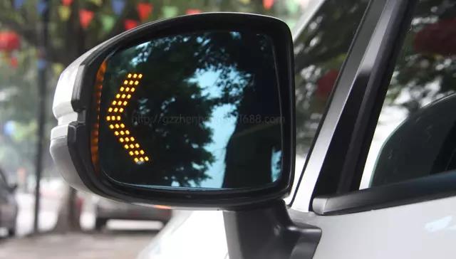LED转向加热蓝镜,提高行车安全,带LED转向警示、电加热、防炫目和增大视野功能。