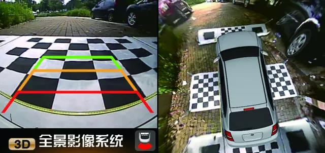 3D升级版360度全景影像系统,通过独家算法将4枚车载摄像头获取的影像数据拼接成立体视图。