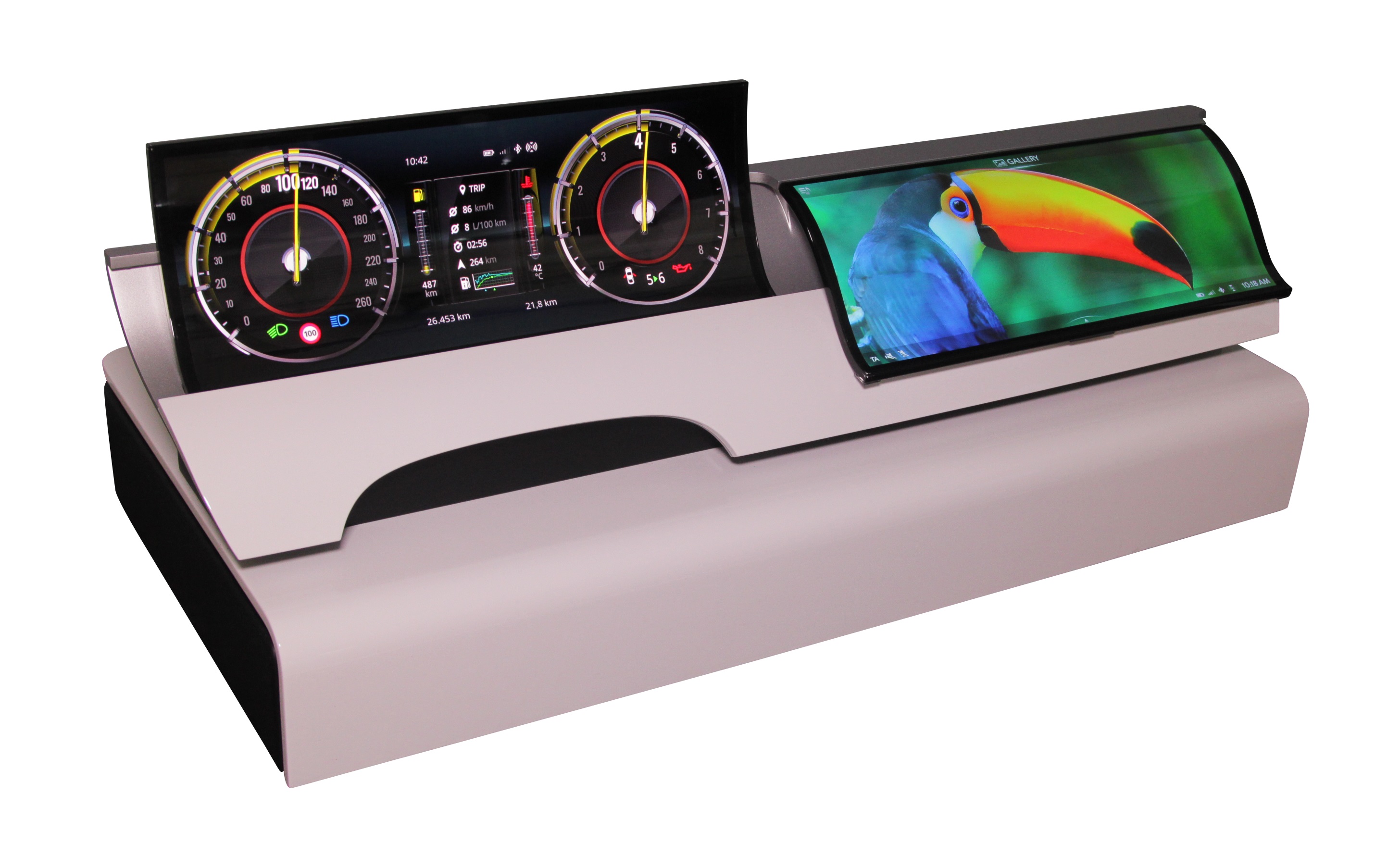 现场展出的信息显示屏产品则包括了双OLED和可根据不同视觉角度显示不同内容的双画面显示屏,比如驾驶员侧显示导航信息,乘客侧显示播放的视频。