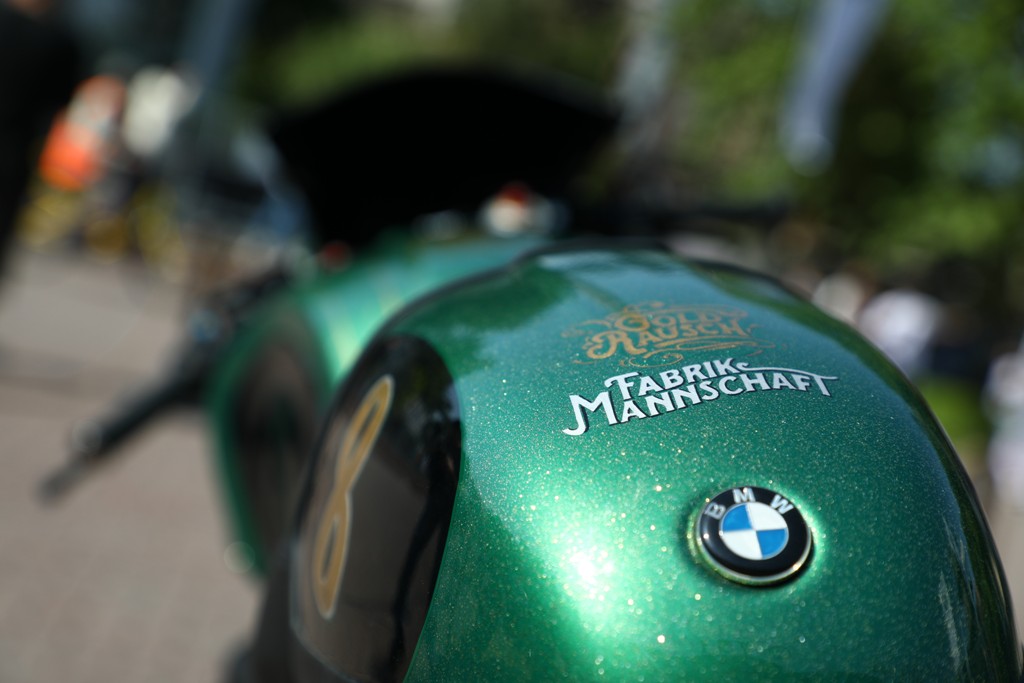 在28号的活动中,一款基于拿铁打造的BMW Café Racer,“Goldrausch”,也和全新Scrambler同台展出。这款车型拥有典型的Café Racer比例架构和坐姿;前导流罩的灵感源于历史上宝马摩托车在空气动力学方面的一系列创新;车头、尾分别配有手绘纹饰以及中国人喜爱的数字“8”。导流罩、油箱、后导流罩、后轮辋施用了搭配闪光金的英伦绿配色,前轮和裸露出的车架采用闪光金配色。如此搭配,既保留了Café Racer纯粹极简的灵魂,又注入豪华时尚的新元素,凸显出设计师以色彩赋予复古车型独特韵味的探索理念。