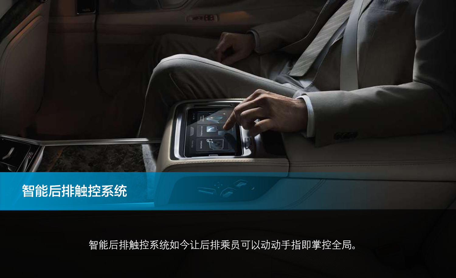 当坐在后排的家人想要调节后排空调,通风或座椅加热灯,或者想要选择喜欢的娱乐频道,不需要打扰驾驶者,智能后排触控系统帮您一一搞定。