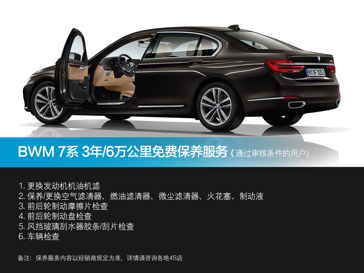 想买什么样的车可以个性化定制,用车期间更可以尊享贴心的服务。BMW 7系赠送的3年/6万公里免费保养维护,可以让爱车随时保持良好的驾驶状态。不仅如此,秉承新BMW 7系之创新精神,宝马为深具远见的您定制了限时特惠金融方案,首付20%起,利率低至0.88%,助您从容开启低利率、低月供之全新未来。我们相信,以创新科技定义未来豪华的BMW 7系,将和那些在各自领域积极创新、引领着社会发展的“前瞻领袖“一起,勇敢驰骋在前方……