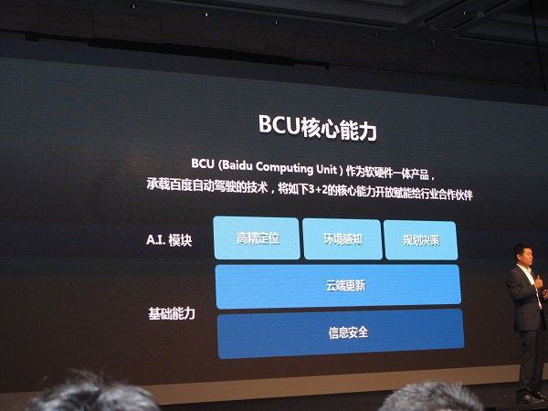 在演讲中,顾维灏介绍了百度推出的可量产自动驾驶专用计算平台BCU(Baidu Computing Unit),他表示,BCU具有软硬硬件一体化特性,为自动驾驶商业化量产提供了解决方案。