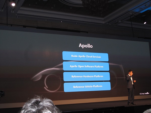 顾维灏在演讲一开始就做了一个非常感人的回忆。他说,这是他第三次参加这个展会。两年前第一次参加这个展会时,只是提了个手提箱,向参展的OEM厂商展示其研发的产品。等到去年第二次来的时候就有了67m2的展台,专门展示百度研发的自动驾驶不可或缺的高精地图。今年这次来参展,不仅有很大室内展场,而且有外场的自动驾驶汽车试验区。