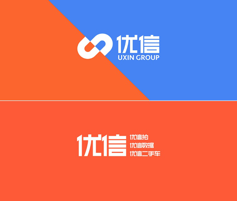 优信新旧LOGO对比图,新的蓝色和橙色代表着“一半是海水,一半是火焰”的融合