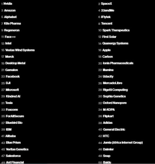 《麻省理工科技评论》今年全球50大最聪明公司完整榜单