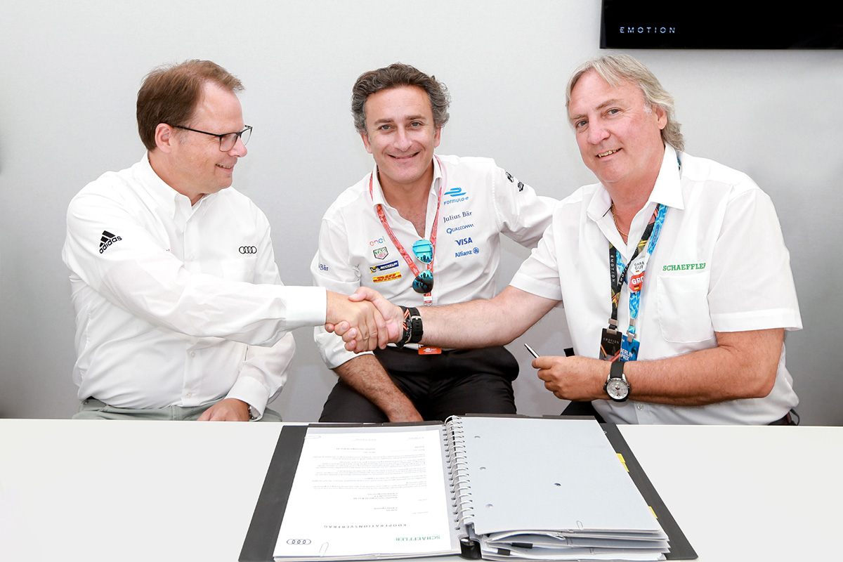 新一代Formula E赛车动力总成的基本概念已经确定,其中一些零部件已经在测试中。事实上,舍弗勒与奥迪此前在Formula E方面已经建立了合作。现在,协议的正式签署进一步深化了双方的合作。舍弗勒集团副首席执行官兼首席技术官彼得•古兹默教授说道:“舍弗勒与奥迪在电动方程式方面一直保持着积极的合作关系,今天,我们很高兴将双方越来越紧密的合作锁定为三年。正如几十年来我们与奥迪不仅在赛车,同时在量产车的零部件开发和制造方面积极合作一样,我们确信双方在新的合作中将全力以赴,继续谱写ABT舍弗勒奥迪运动车队的成功故事。”