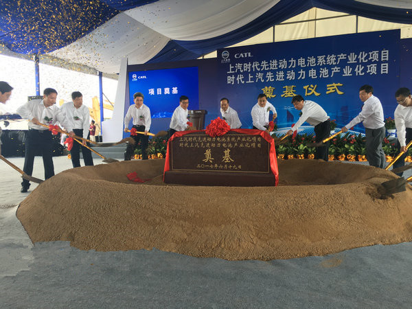 6月19日,上汽集团与宁德时代在江苏常州溧阳举行两家合资公司——时代上汽动力电池有限公司(以下简称时代上汽)和上汽时代动力电池系统有限公司(以下简称上汽时代)奠基仪式,双方此次在新能源汽车电池领域强强联手投入超百亿元,将按照国际一流、国内领先的标准,建设高度智能、绿色环保的先进电池和电池系统生产基地,积极推动中国汽车产业转型升级。