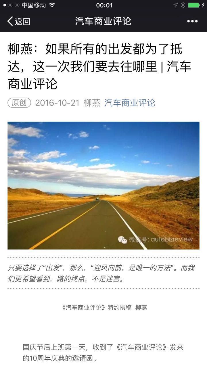 柳燕作为资深的汽车行业职业经理人,我们能感受到柳燕是在用自己的方式,为汽车行业群体的“诗和远方”探寻前路。在文章《如果所有的出发都为了抵达,这一次我们要去哪里》的最后,柳燕说:“我们更希望看到,路的终点,不是迷宫。”