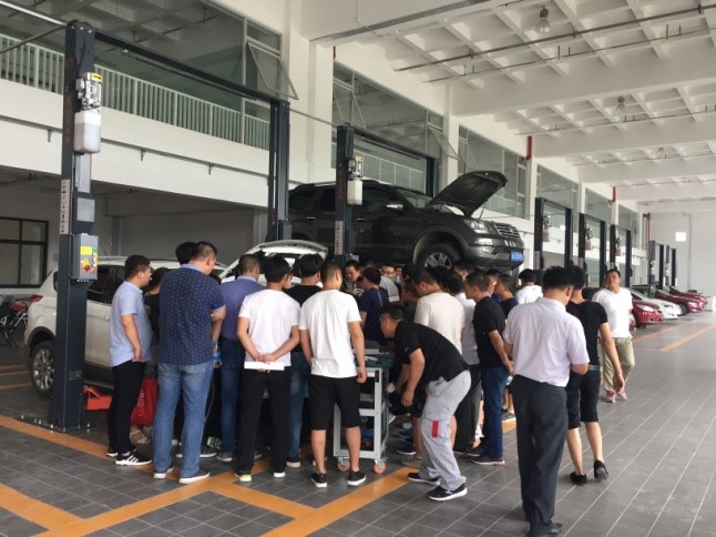 交流会现场安排了4辆车辆用于换油养护演示,现场演示自动变速箱油交换机并由学员直接演练,理论结合实践,大大地提高了学员们及修理厂客户更换自动变速箱油的信心。在换油的过程中,还解答了关于交换机的连接方式、换油的流程等问题。