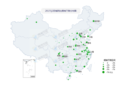 大批城市基础建设竣工、地铁开通、城市快速路开通等都对城市缓堵产生作用。报告显示,2016年年底,贵阳开通中环路,城市拥堵有了明显变化。2017年第二季度出行高峰拥堵程度相比去年同期下降6.11%,拥堵排名也由之前的第7名下降至19名。