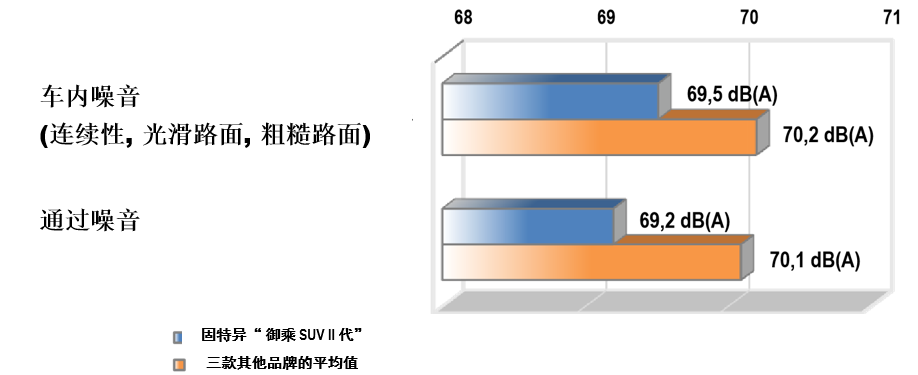 “御乘 SUV II代”在车内噪音及通过噪音与主流竞争对手的对比
