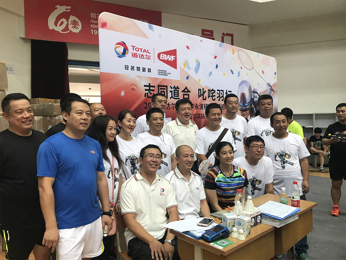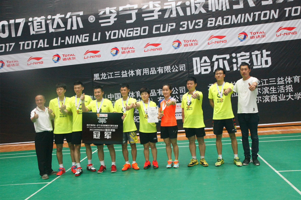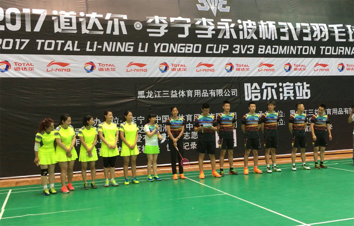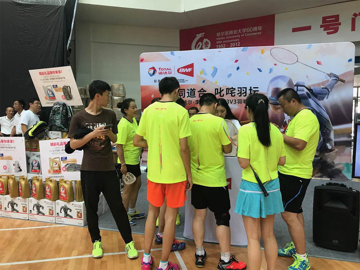 汽车财经网8月18日讯,由道达尔润滑油(中国)有限公司冠名,李宁(中国)体育用品有限公司主办,黑龙江省三益体育有限公司承办的2017道达尔•李宁李永波杯3V3羽毛球赛哈尔滨站于8月12日在哈尔滨商业大学北区体育馆热力开打。世界冠军王琳,道达尔润滑油(中国)车用油市场经理冯卫、道达尔润滑油(中国)车用油技术经理李小舟,李宁公司黑吉辽蒙、陕甘宁青新大区经理相英魁,黑龙江三益体育用品有限公司乒羽展示中心经理冷熙伟到场参与了赛事的开幕式。本站赛事参与人数共计770人,创造了近3年黑龙江省羽毛球赛参与人数最多的记录,现场也吸引了从吉林省、辽宁省特意赶来的球友。