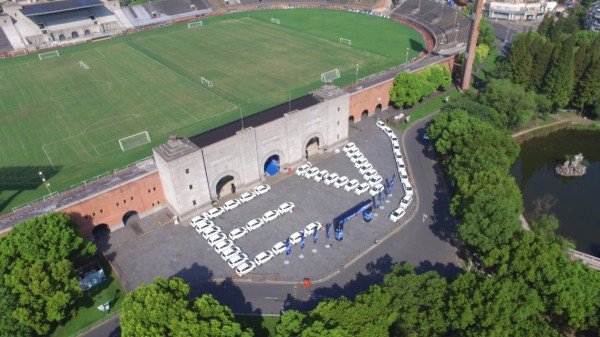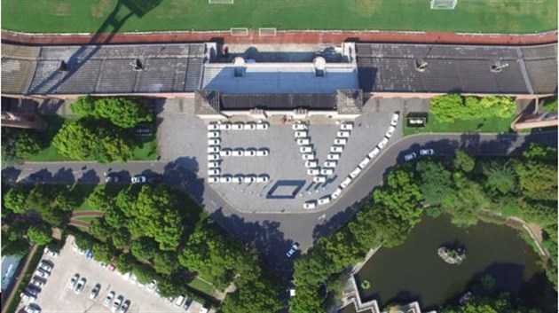 上海新奔奔EV交车仪式将交车仪式搬到了上海江湾体育中心。开阔的广场上将要交付的长安新奔奔EV摆出了“EV”字样代表了格灵出行将携新能源汽车,共同发展共享新能源汽车的未来。