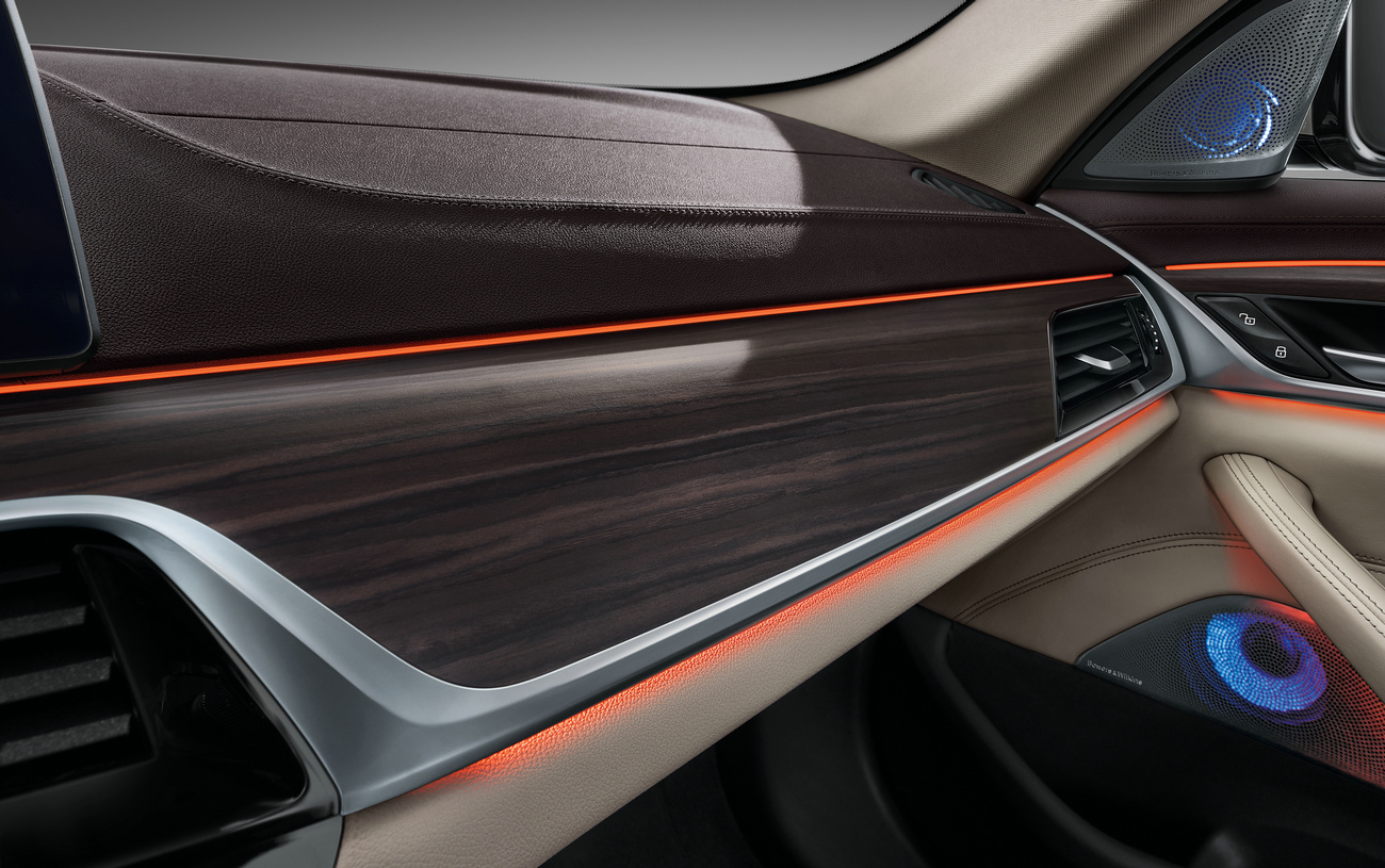 基于对当代消费者追求全面豪华体验和精良品质的理解,全新BMW 5系Li为客户打造出全感官的豪华体验。多达11种色调的环境氛围灯、8种可调的高级香薰套件、具有钻石高音扬声器的Bowers & Wilkins环绕立体声,众多越级豪华配置营造出惬意享受的氛围。利用SYNTAK技术对发动机舱进行隔音降噪处理,并在车顶集成嵌入式的隔音板,使新车尤为静谧舒适。