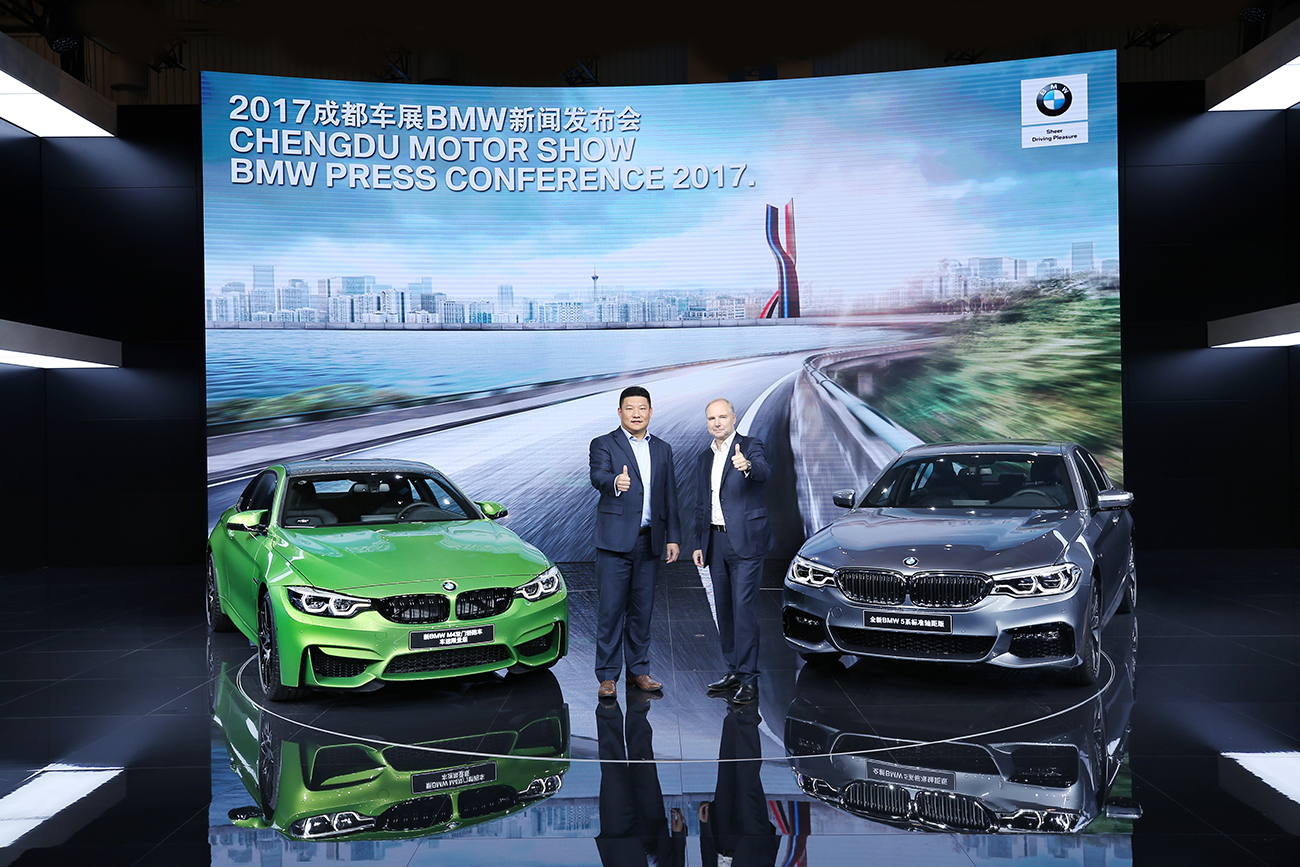(成都)8月25日,宝马集团携BMW、BMW M与BMW i品牌旗下众多焦点车型精彩亮相2017年成都国际汽车展览会。进口版全新BMW 5系标准轴距版正式上市。新车型以其出类拔萃的动态性能与充满未来感的智能互联,为酷爱操控与潮流科技的社会精英带来全新选择;新BMW M3/M4车迷限量版启动销售,靓丽的车身颜色将M的真我个性带至全新维度;BMW 3系M运动曜夜版中国首次亮相,为运动豪华轿车开辟了动感个性风潮的新境界。