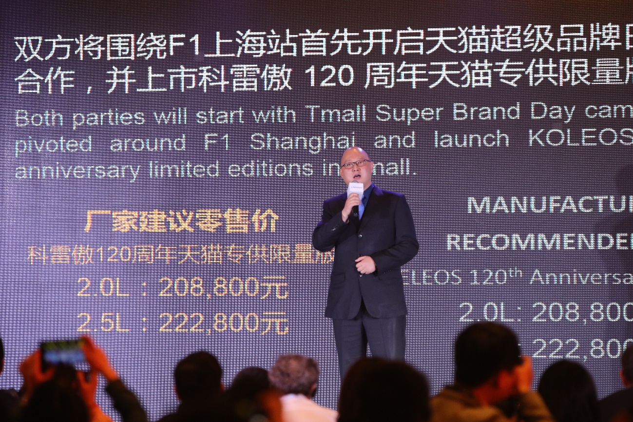 今年2月,雷诺运动F1车队与阿里巴巴旗下天猫建立合作伙伴关系,共同征战国际汽联一级方程式锦标赛2018赛季。天猫成为雷诺运动F1车队的全球赞助商。3月7日,雷诺集团和东风雷诺宣布与阿里巴巴集团达成战略合作,深化雷诺“在中国、为中国”的战略,在技术、新零售及服务等前沿领域开展合作,共同把握未来机遇。目前,雷诺天猫旗舰店已正式上线。天猫LOGO已经出现在雷诺运动F1车队赛车的车头位置。东风雷诺还专门为天猫众多的线上消费者推出科雷傲120周年天猫专供限量版,东风雷诺市场销售部副总裁兼东风雷诺市场销售部部长陈曦宣布,科雷傲天猫专供限量版车型今天正式上市,2.0L版价格为20.88万元,2.5L版价格为22.28万元。