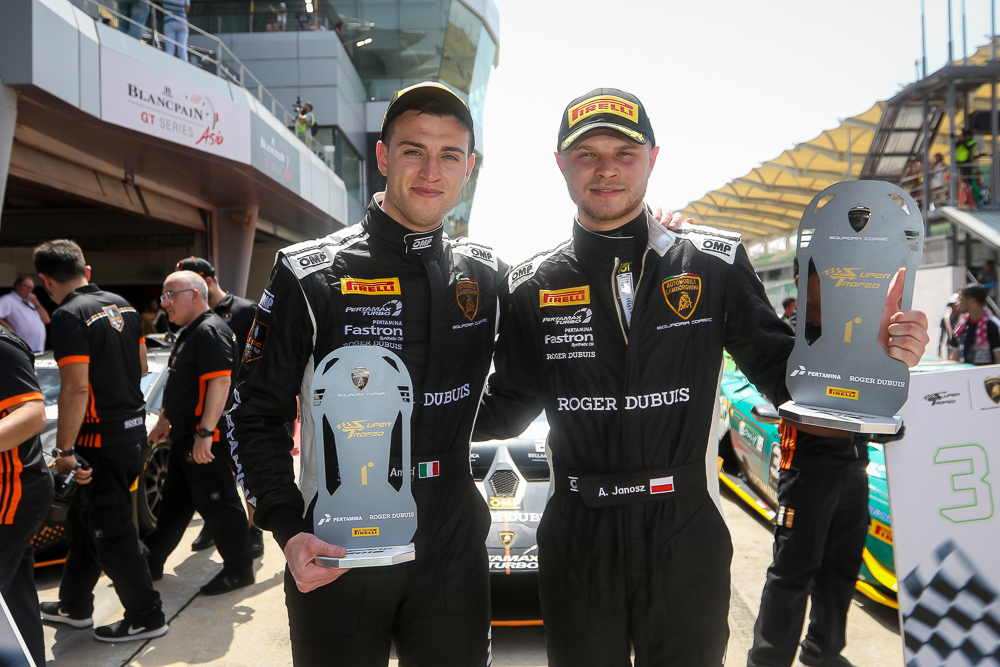 汽车财经网4月17日讯,近日,兰博基尼Super Trofeo亚洲挑战赛2018赛季举行第二回合的竞逐。FFF Racing Team的Andrea Amici和Artur Janosz不负众望,以出色的姿态,又一次征服马来西亚雪邦国际赛道。车队的另一分队、英国车手Jack Bartholomew和James Pull组合获得亚军,而Top Speed Racing Team的印度车手Armaan Ebrahim和Anindith Reddy则收获专业组季军。