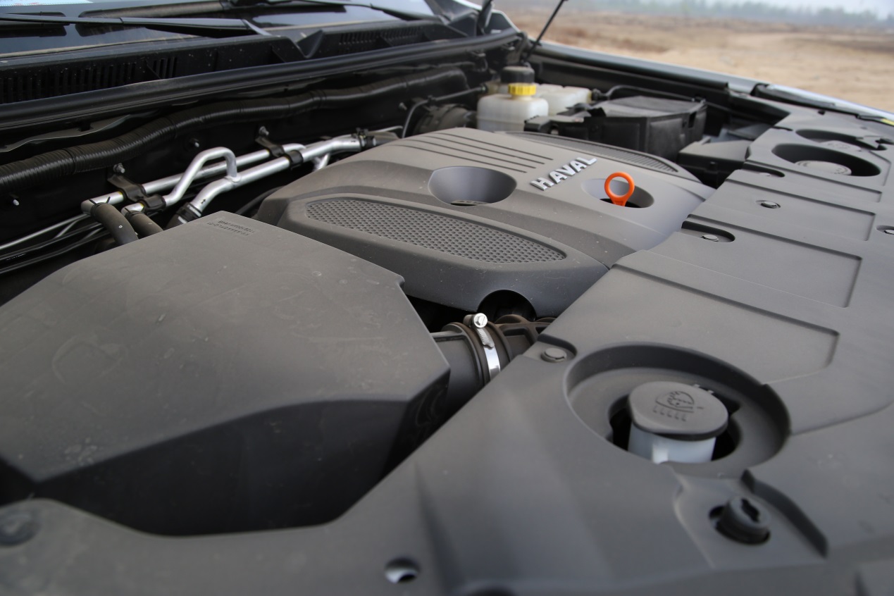 接下来就是这台柴油发动机了,只看外表的时候,两个版本的H9并没有区别,但也正是因为这一点,让我对这台柴油机有了颠覆性的认识。2.0T的柴油机只有140kW的功率,最大马力都不到200Ps。然而420N•m的扭矩足以说明一切。涡轮在1400rpm就起压工作,所以这台柴油机比H9的汽油机更加激进一些,虽然最大扭矩区间只有1000rpm,不过对于越野来说,1000rpm的区间已经够满足需要了。