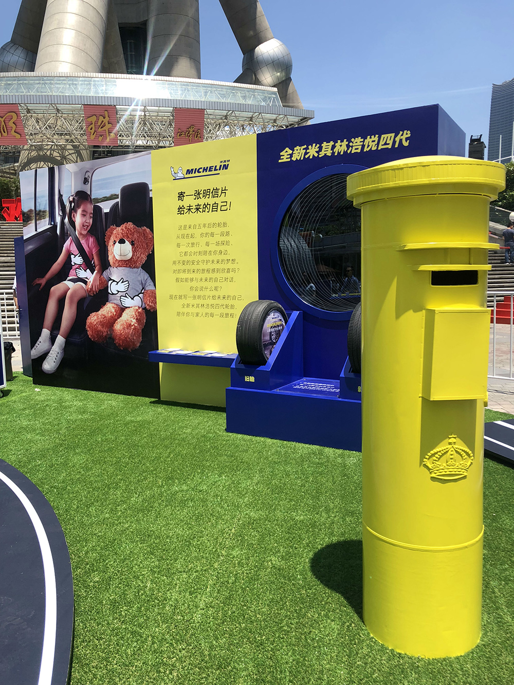 值得一提的是安全刹车挑战区,米其林以传统冰壶运动为灵感,设置了模型玩具车游戏,生动展现浩悦四代轮胎的出色湿地抓地力。此外,在产品互动体验区充满未来感的镜面装置下,亲子家庭们可近距离感受这款产品,或在品牌定制的明信片上书写未来寄语。浩悦乐园设有拍照体验区,亲子家庭们可换上印有米其林轮胎先生拥抱手势的服装,将这份快乐的节日记忆定格。
