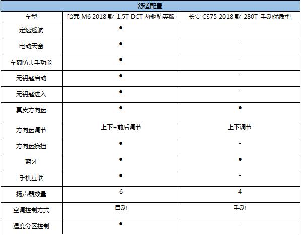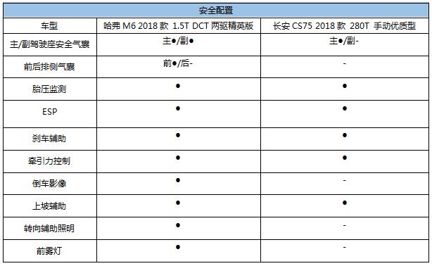 在安全层面,长安CS75的安全配置也算是目前市场上的主流水平,胎压监测、ESP、上坡辅助等配置也装载其身。但在表格中,我们也能看出长安CS75的配置和哈弗M6相比略显逊色,由此可见,哈弗M6在安全性能上所付出的成本更高,带来的配置更丰富,更周到。