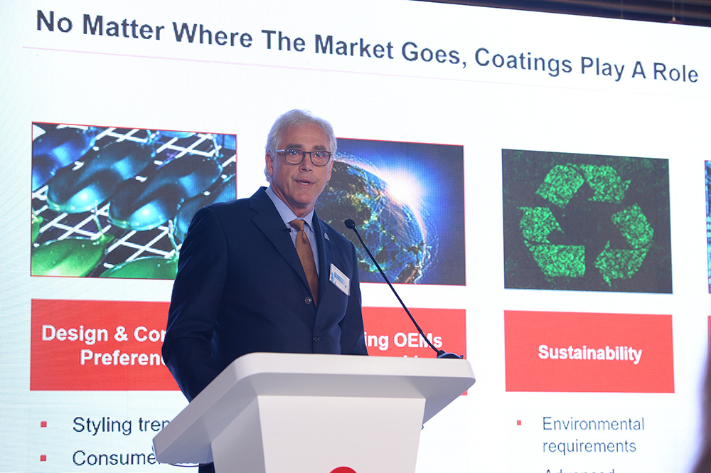 艾仕得涂料系统高级副总裁兼首席技术官巴瑞·辛德博士发表主旨演讲