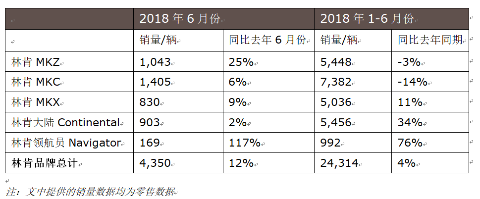 6月销量同比增长12%,林肯中国2018年上半年交付新车24,314辆