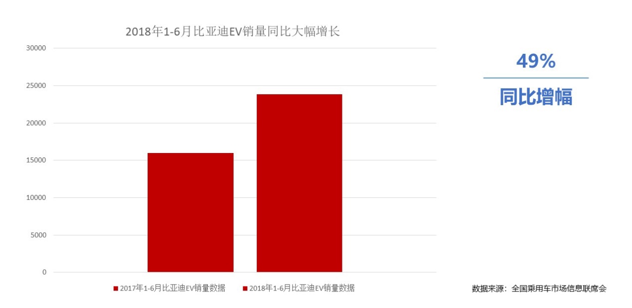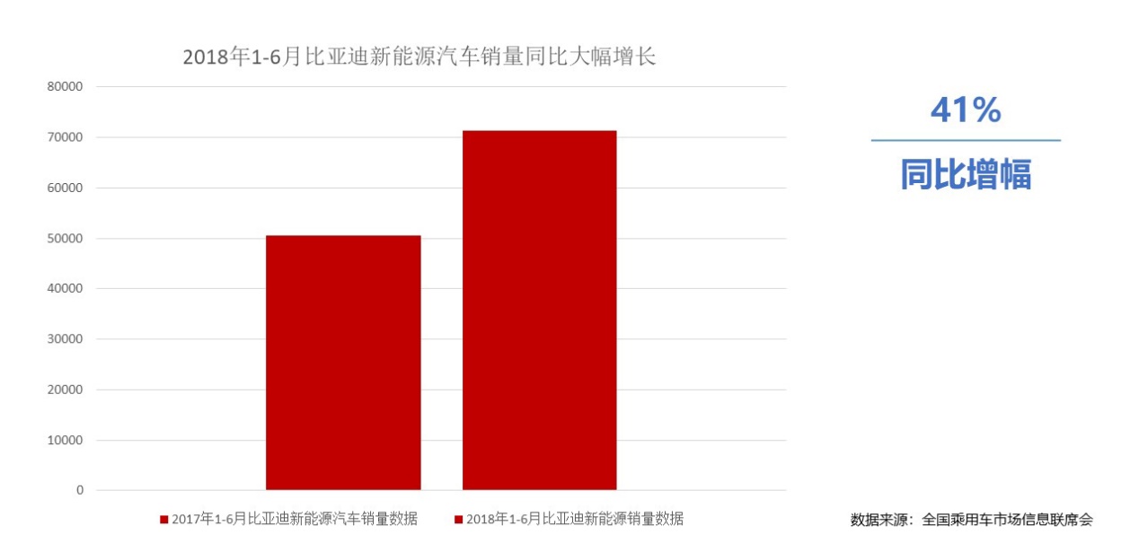 比亚迪2018年1-6月新能源汽车销量同比增幅41%