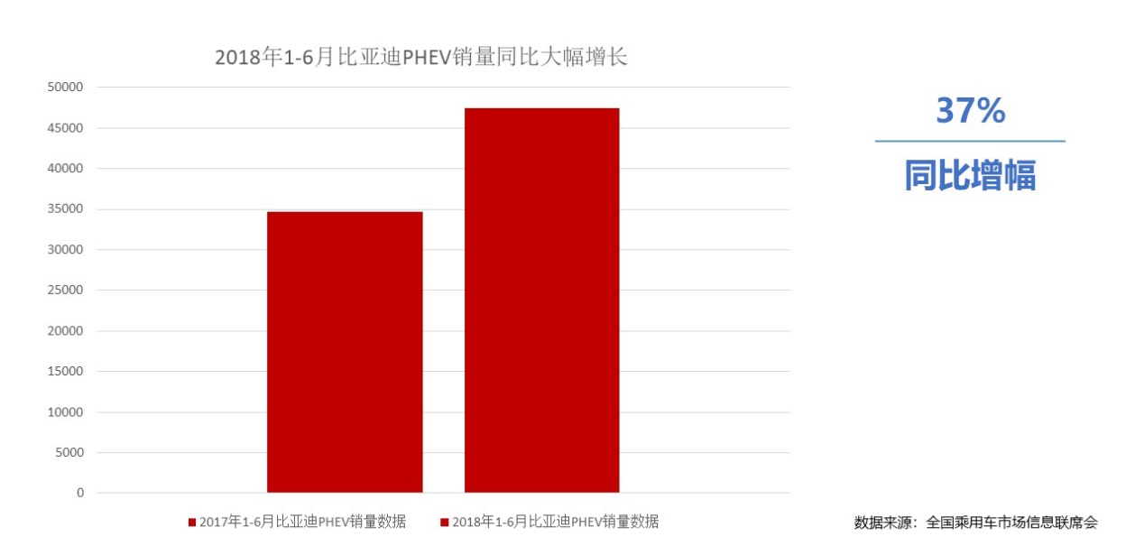 比亚迪2018年1-6月PHEV销量同比增幅37%
