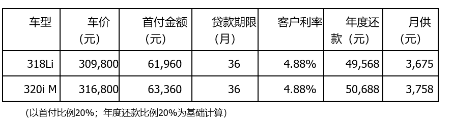 有没有想过,其实每天百元,就可以拥有一辆BMW3系?考虑到现今的消费者需求以家庭用车居多,而在兼顾空间的同时能够提供更激情的驾驶感受让3系成为许多家庭购车方案。那么可以算一笔账,按照最新的金融政策,如选择悠贷金融产品来购置适合家庭的318Li车型,在20%的首付和36个月的贷款期限下,最低每月仅需3675元的月供,折合到每天也就是118元——一件网购衣服的价格。如果省下这些每日的过度消费,您不但能收获健康精简的生活,更能轻松拥有一辆家庭良选的318Li长轴距车型。当然了,想要拥有更运动的M车型,比如320i M运动套装版,月供也仅需3758元,折合到每天也就比318Li多了3元钱,何乐而不为。