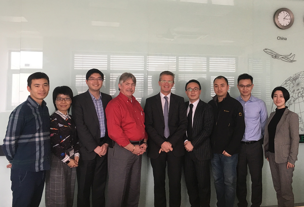 FAA相关资质审核负责人Walter BEARDEN先生(左四)与舍弗勒大中华区首席运营官魏骏腾先生(左五)及航空航天行业相关团队合影