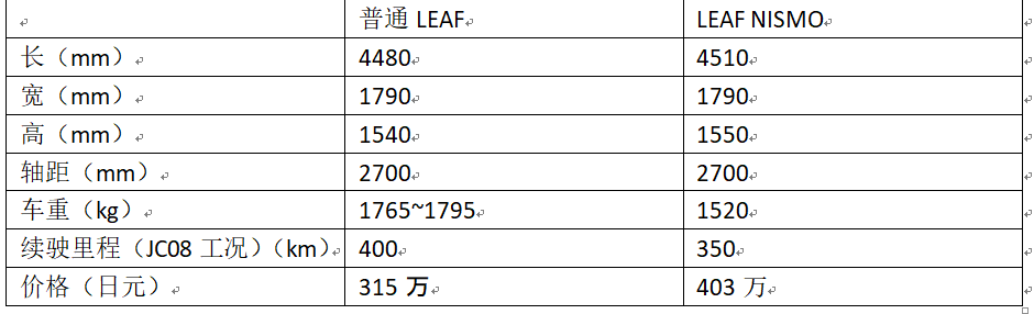 普通LEAF与LEAF NISMO比较