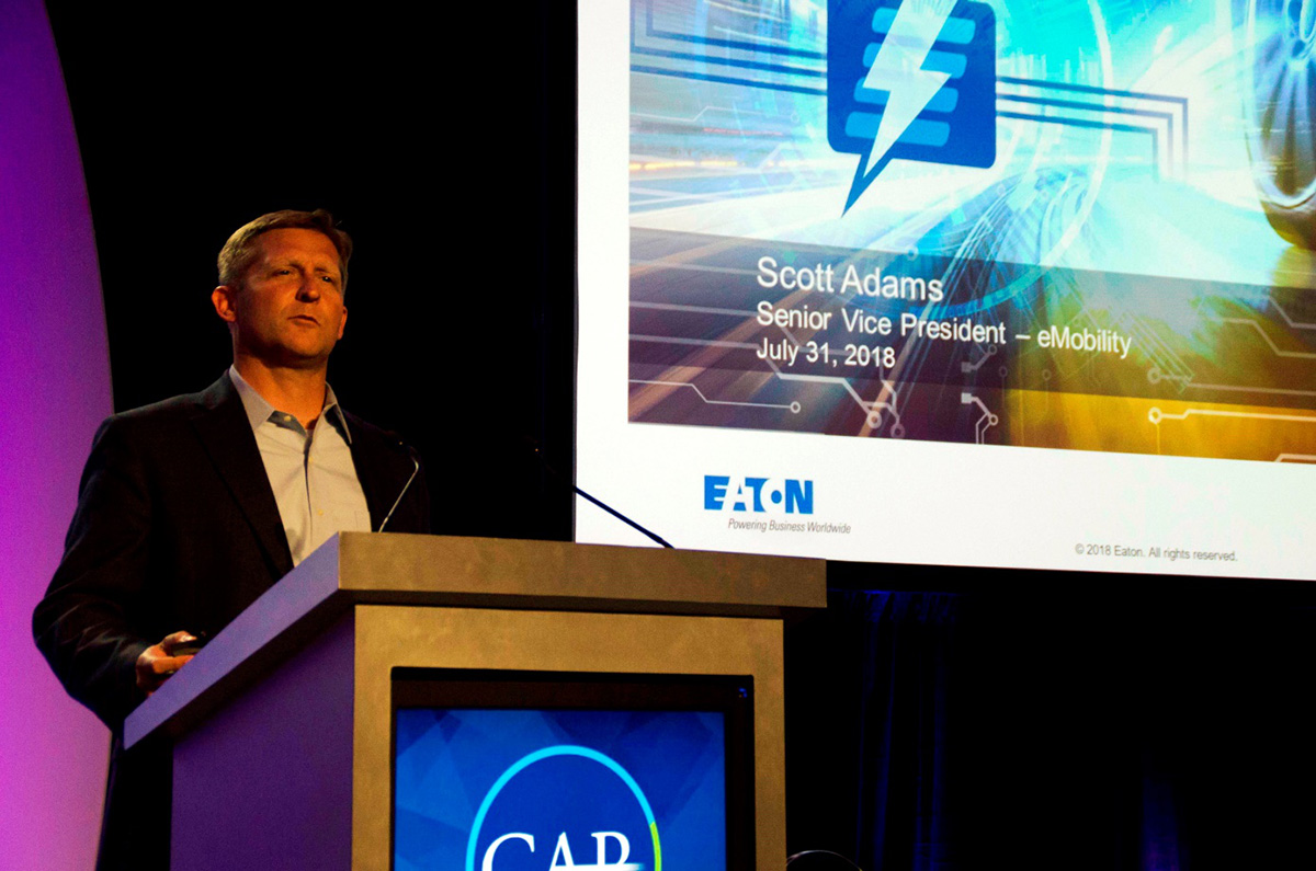伊顿eMobility产品战略和销售部门的高级副总裁Scott Adams,在汽车研究中心近期于密歇根州特拉弗斯城举办的管理简报研讨会上,发表了关于新一代电气化汽车的高压需求的演讲