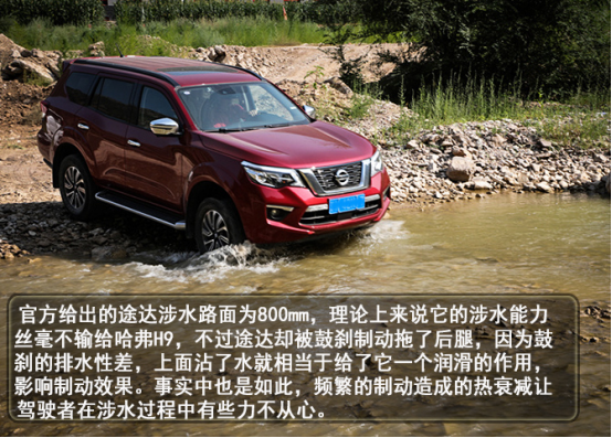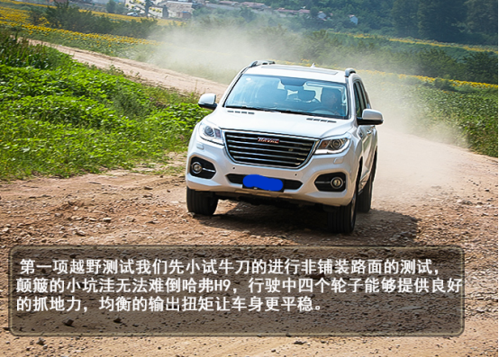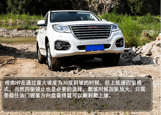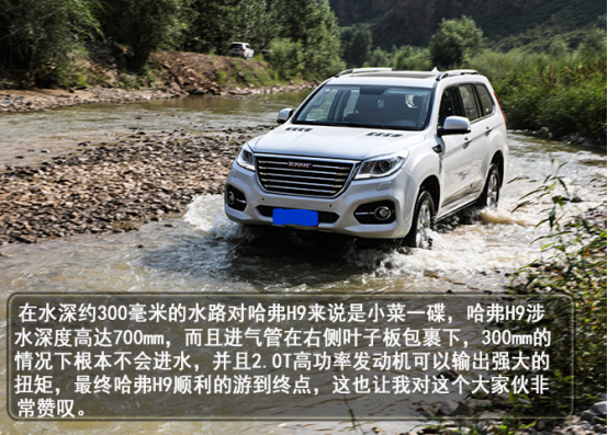 在涉水路面中,哈弗H9给人的感觉要稳重多了,间断且持续性地踩下油门,就可以稳稳而过。