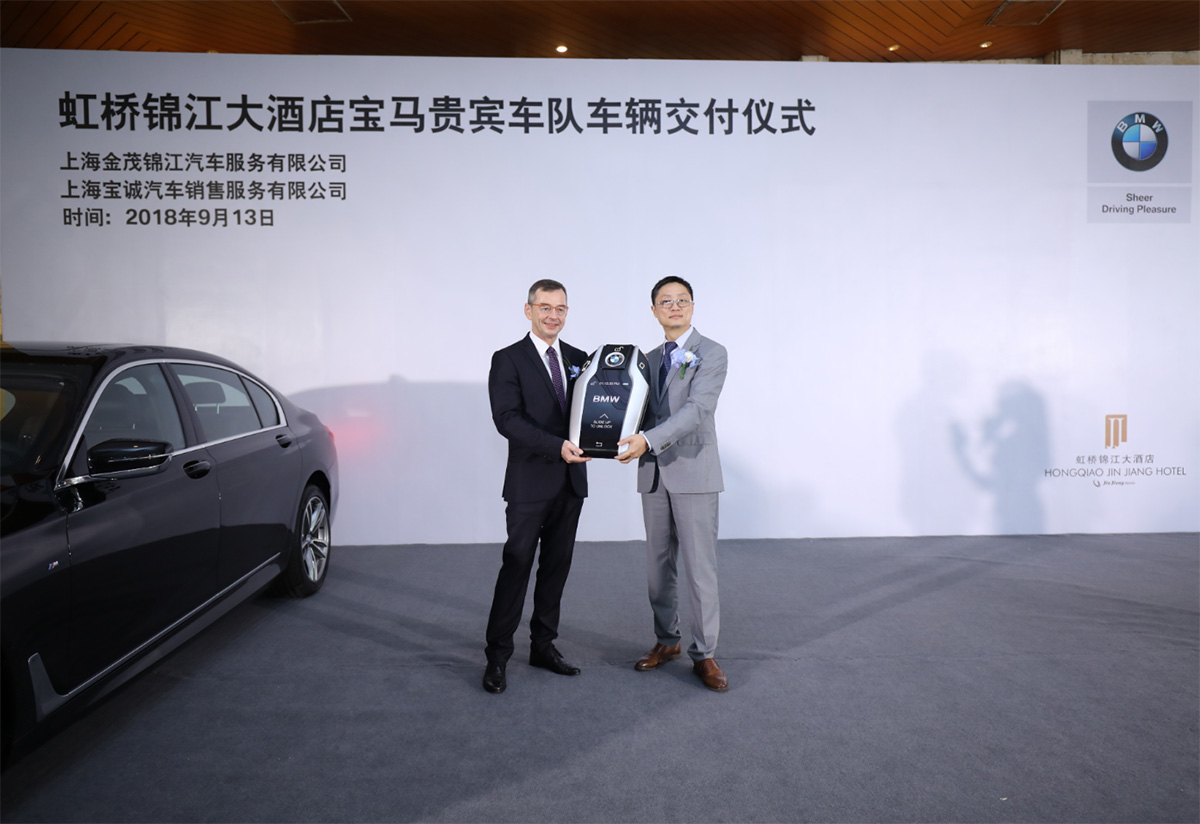 华晨宝马汽车有限公司大客户、机构及外交销售部副总裁朱彤先生、上海宝诚汽车销售服务有限公司总经理陶卫先生及虹桥锦江大酒店和上海金茂锦江汽车服务有限公司相关领导出席了交车仪式。 宝马贵宾车队将不仅有助于虹桥锦江大酒店提升服务品质,更是奢华出行方式的一次完美升级。它会为来自世界各地的贵宾带来一段尊贵、非凡的难忘旅程,让更多的朋友感受BMW之悦。