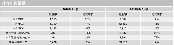 林肯中国2018年第三季度交付新车15,303辆,同比增长5%