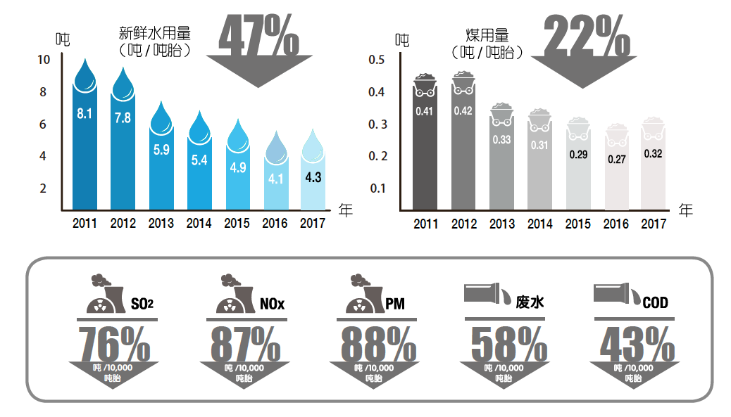 作为全球领先的轮胎制造企业,佳通轮胎坚守源自新加坡的“绿色制造”理念,将实用之道贯穿轮胎研发、生产、销售、服务等各个环节,以“环保品质”作为轮胎生产的首要考量要素,在轮胎各个生产环节致力于降低轮胎整个生命周期对环境的影响。佳通不断降低废气、废水、生产废弃物的排放,同时提高循环再利用率,采用对环境负责的方式生产真正出色产品。自2011年至2017年间,佳通有效降低新鲜水用量47%,降低煤用量22%,同时有效降低其他污染物的排放量。今年7月份,凭借自身绿色制造和全球一体化研发实力,佳通轮胎更是荣膺2018中国财经峰会“杰出绿色贡献奖”,是对佳通一直以来践行可持续发展战略的高度褒奖。