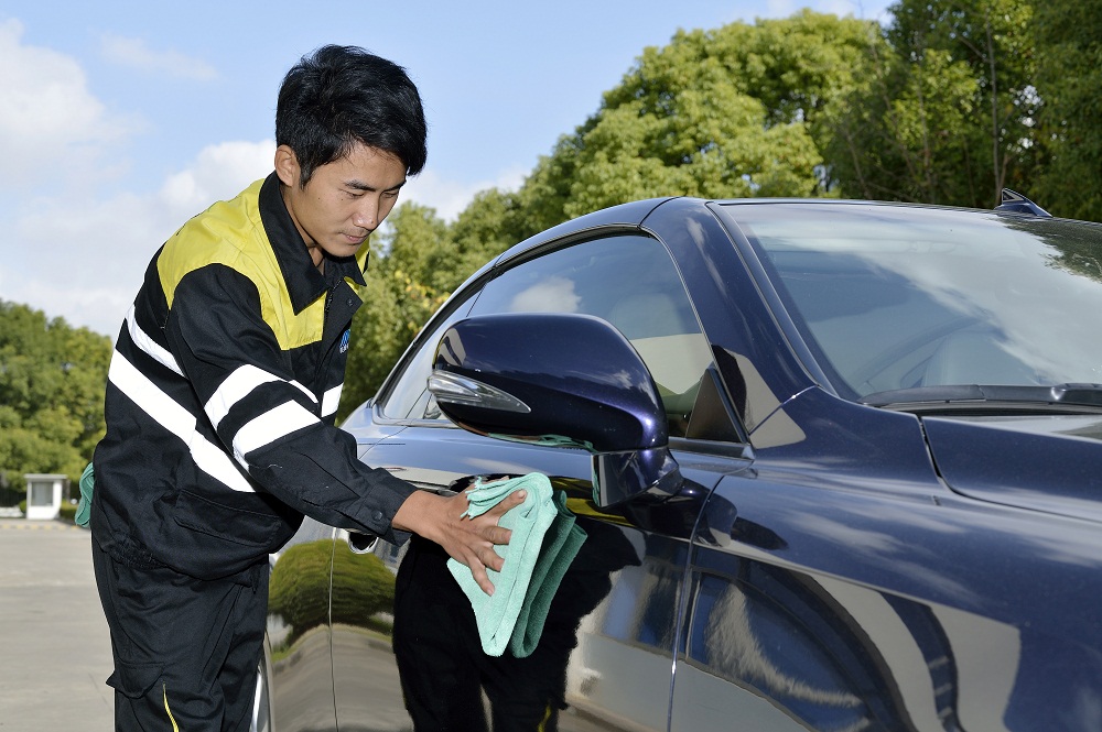 • 洗:通过生物降解的办法来清除车子表面的灰尘和污垢。强力渗透剂渗透到污渍下面进行软化,污渍悬浮剂把污渍悬浮起来,使污渍与车漆产生间隙,最后表面活性剂将污渍去除,使车漆表面光亮如新。