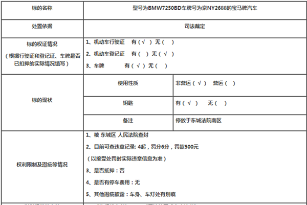 这样的公开信息,更别谈作为二手车的涉案车辆是否通过了相关安全认证。与其它二手车拍卖平台的车辆安全认证和交易担保服务几乎没有可比性。“标的物以实物现状为准,本院不承担本标的车辆瑕疵保证。”一行字赫然在目。试问,如果不是冲着一块“京”字“铁皮”,这样的车有多少人敢买?