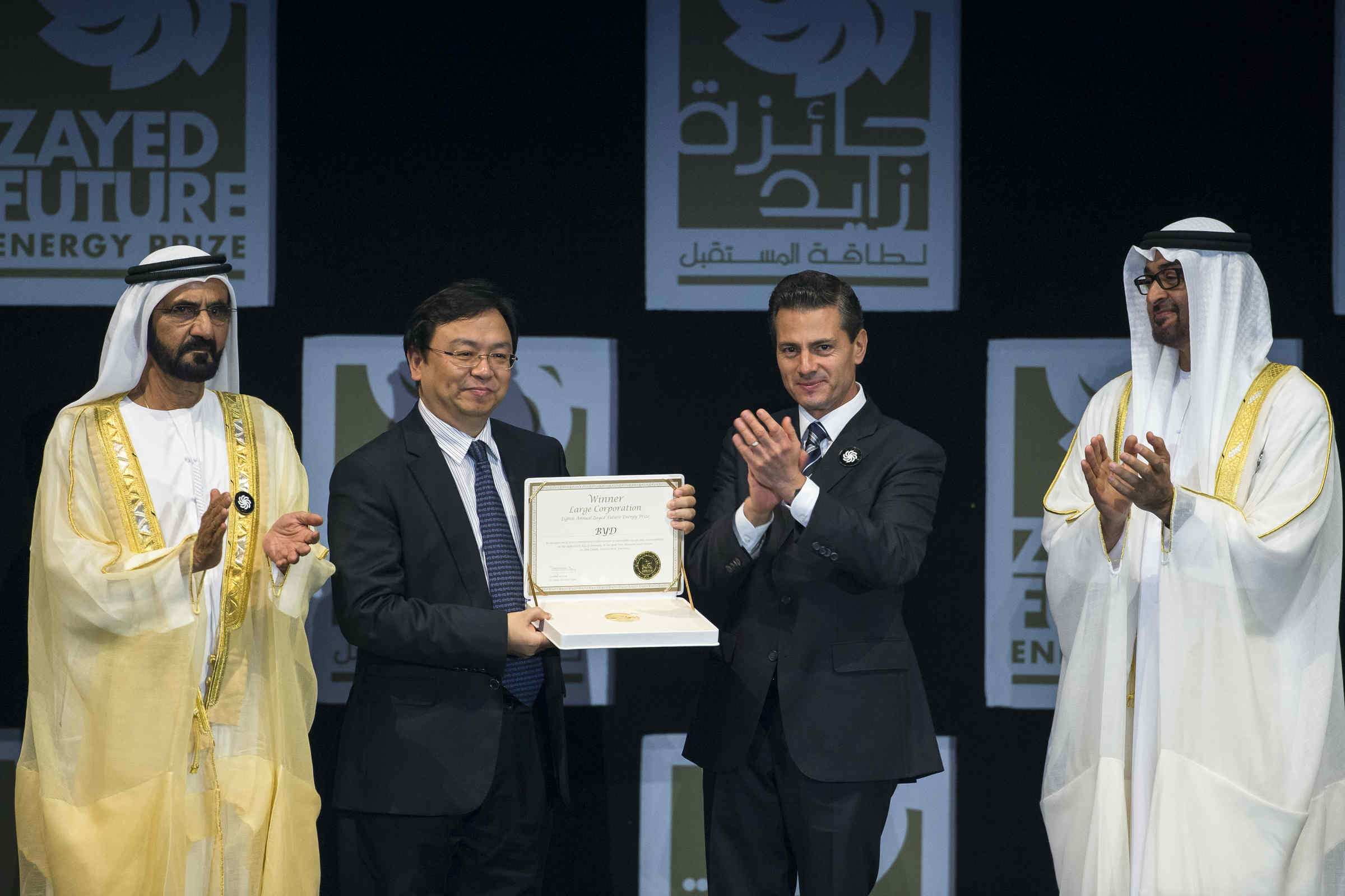 今年一月,联合国秘书长潘基文和七位国家领导人共同出席了于阿布扎比举行的第八届颁奖典礼,共有九名获奖者被授予扎耶德未来能源奖。