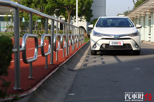 留下印象最深的,这台雷凌双擎几乎不需要驾驶者改变任何驾驶习惯,按照自己的意愿驾驶,全部的工况判断以及油、电动力的切换完全交于电脑判断。1.8L阿特金森发动机(功率73kW,分支扭矩142Nm)加电动机(功率53kW)的动力组合,低速轻踩加速踏板,通常只以纯电模式行驶;深踩发动机介入,有别于国内插电式混动车型,发动机介入时,声音、震动、动力突兀性都控制得异常优秀。车辆提供经济、普通、运动三种模式切换,其实质就是改变发动机的介入点,根据驾驶者当下需求(动力输出优先还是节油优先),提供不同方案,总体来说三种模式的主观驾驶感受区别不明显。