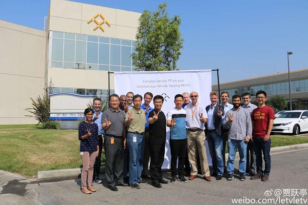 更值得注意的是人群背后的标志牌,上面写道:“恭贺FF获得自动驾驶测试执照。”这一信息指的正是前不久FF在加州取得自动驾驶测试执照一事。这一重大成绩,再次证明了FF在技术研发、生产制造等方面的飞速进展,并将进一步推动FF技术研发,加速FF的量产进程。照片中,众位大咖的“V字形”手势,正是对FF未来决胜自动驾驶领域信心的最好印证。