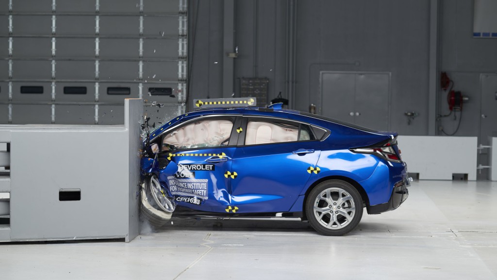 从2016年开始,第二代雪佛兰Volt就已进入市场,但IIHS最近才对包括该车型在内的一批电动车型进行一系列碰撞试验(更多测试结果还有待公布)。Volt在偏置碰撞试验中取得了最好的成绩,IIHS唯一的担心在于“假人的头部在与安全气囊接触后稍稍向左侧滑移”。除此之外,Volt还在正面撞击预防系统的评比中获得了极高的评价。