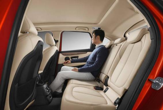 BMW 2系旅行车是一款前驱车型,由于取消了后轮驱动轴,后排中间凸起位没那么高了,后排座椅可前后滑动13厘米,并将座椅靠背进行三级调节,三个人可以轻松坐下并拥有非常宽敞适宜的坐姿。