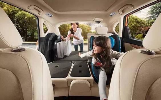 而且整个车厢设计有众多贴心的置物空间,而且后排座椅可按40:20:40比例折叠/放倒,行李厢最大容积达1510升,放下儿童车可谓轻而易举。而行李厢底板下面的储物格,可以平铺两个登机行李箱,更形象一点,空间大得真是夸张!平整的行李厢底板、大型尾门非常适合的奶爸奶妈放置物品。