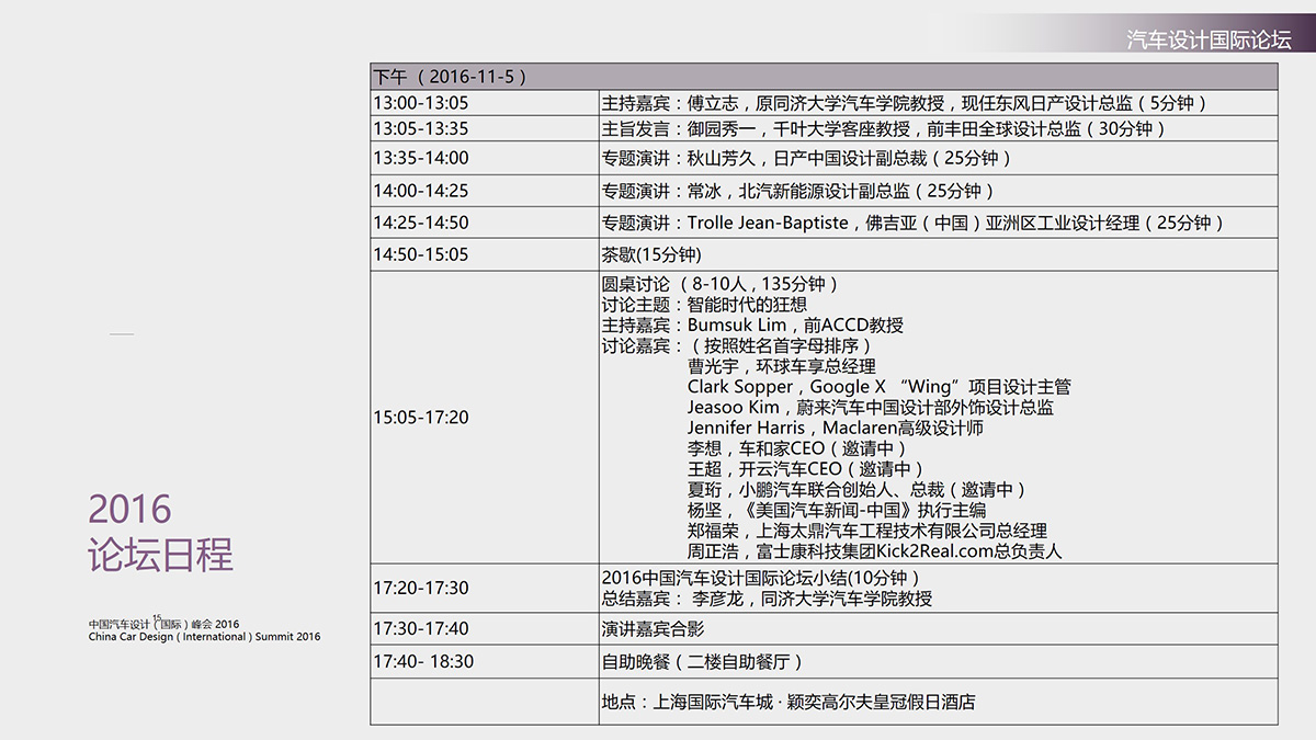 内容预告:CCDIS中国汽车设计(国际)峰会2016